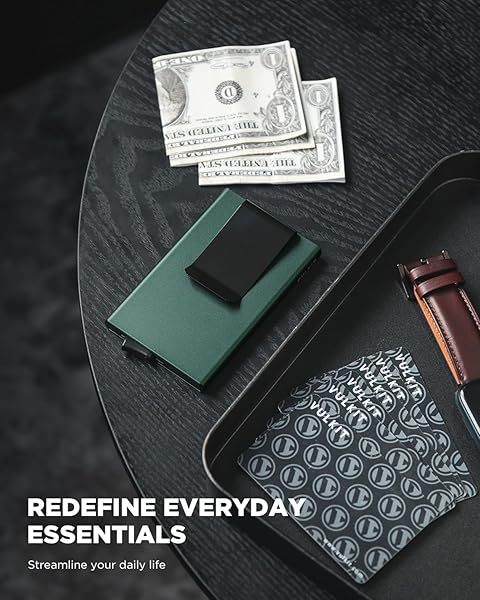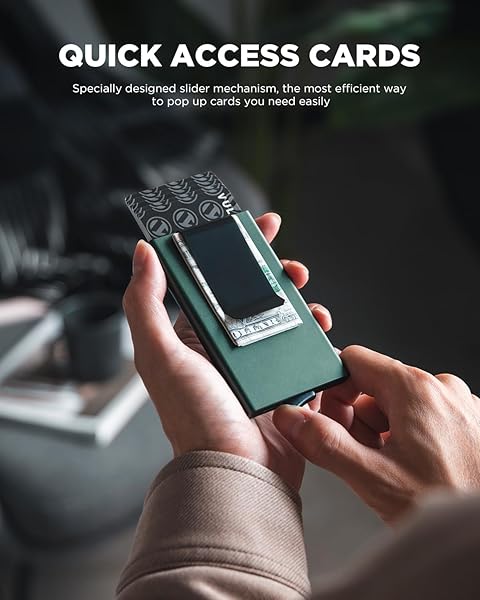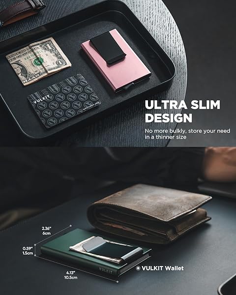 - VULKIT Minimalist Wallet With Money Clip, RFID Blocking Pop Up Card Holder Slim Metal Wallet For Men, Midnight Green offers reliable performance and quality- QUICK ACCESS - Our pop up wallet patented slider mechanism provide you the most efficient way to pop up cards easily- HOLDS 5 CARDS & Cash- This mens wallet designed to hold up to 4-7 cards. Depending on how many are embossed. Come with durable metal money clipholds some cash and receipt or extra cards