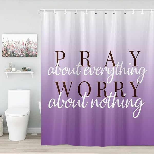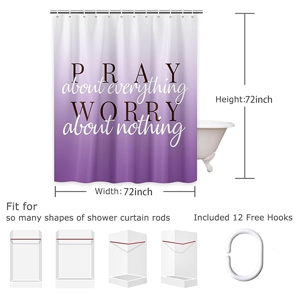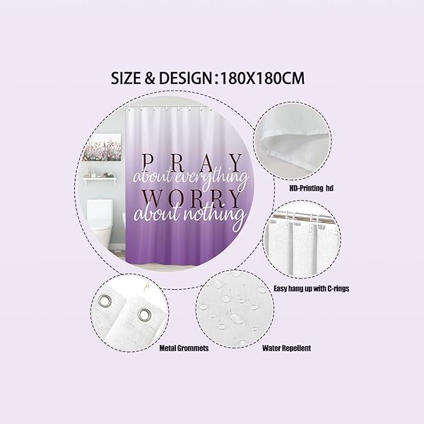 - Wathon Purple Shower Curtain, Lilac Purple Shower Curtains for Bathroom with Inspirational Quotes, Cloth Fabric Bathroom Decor Set with Hooks Modern Cute Chic Shower Curtain 72 X 72in Purple White offers reliable performance and quality- Fabric Shower Curtain: The stylish shower curtain set brings fresh look to your bathroom which leads to an instant upgrade