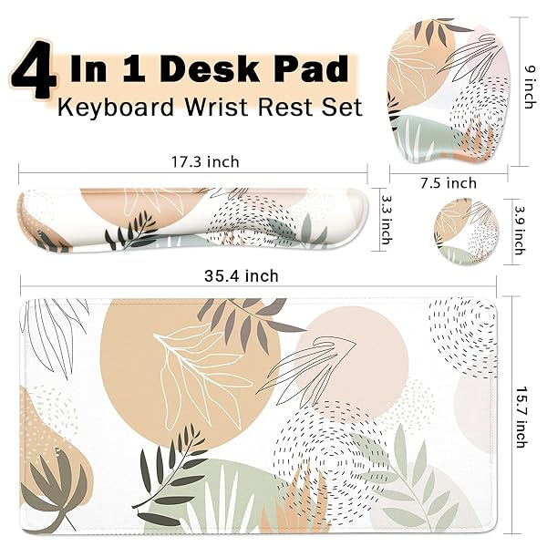 - Keyboard Wrist Rest Large Mouse Pad Wrist Support for Computer, 4 in 1 Memory Foam Keyboard Pad Desk Mat Ergonomic Hand Rest Wrist Cushion for Home Office Gaming - Minimalist Plant with reliable performance and quality- 4-in-1 Mouse Pad Set SizeDesk pad: 35.4 x 15.7 inch, Wrist Rest for Computer Keyboard: 17.3 x 3.3 x 0.8 inch, Wrist Rest for Mouse: 9 x 7.5 x 1 inch, Coaster: 3.9 inch.Effectively avoid damage and other wrist problems caused by friction between the wrist and the de