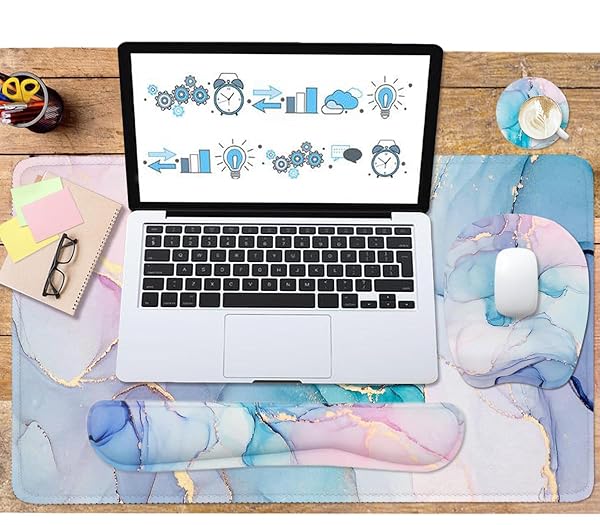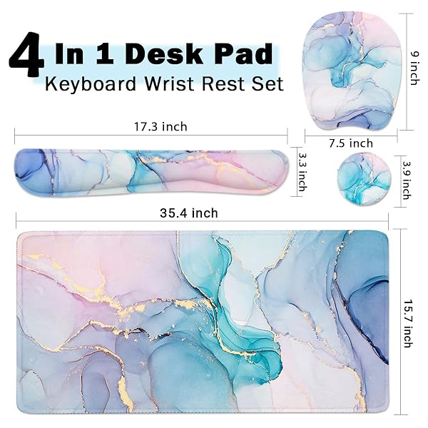 - Keyboard Wrist Rest Large Mouse Pad Wrist Support for Computer, 4 in 1 Memory Foam Keyboard Pad Desk Mat Ergonomic Hand Rest Wrist Cushion for Home Office Gaming - Blue Marble with reliable performance and quality- 4-in-1 Mouse Pad Set SizeDesk pad: 35.4 x 15.7 inch, Wrist Rest for Computer Keyboard: 17.3 x 3.3 x 0.8 inch, Wrist Rest for Mouse: 9 x 7.5 x 1 inch, Coaster: 3.9 inch.Effectively avoid damage and other wrist problems caused by friction between the wrist and the desktop