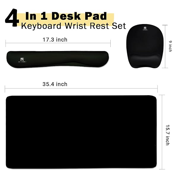 - Keyboard Wrist Rest Large Mouse Pad Wrist Support for Computer, 4 in 1 Memory Foam Keyboard Pad Desk Mat Ergonomic Hand Rest Wrist Cushion for Home Office Gaming-Black with reliable performance and quality- 4-in-1 Mouse Pad Set SizeDesk pad: 35.4 x 15.7 inch, Wrist Rest for Computer Keyboard: 17.3 x 3.3 x 0.8 inch, Wrist Rest for Mouse: 9 x 7.5 x 1 inch, Coaster: 3.9 inch.Effectively avoid damage and other wrist problems caused by friction between the wrist and the desktop.<l