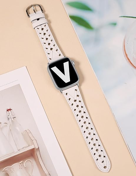 - Wearlizer Leather Band Compatible with Apple Watch Band 41/40/38/44/45/46/49/42mm Women Men, Dressy Breathable Hollow-out Braided Strap for iWatch Bands Series 11 10 9 8 7 6 5 4 3 SE/Ultra 3 2 1 with reliable performance and quality- Newest Fashion DesignCompatible with apple watch band leather women adopt a stylish and unique V-weave design which is a great way to add some subtle detail to your overall look. The distinctive design makes you stand out from traditional leather iwat