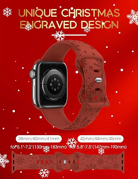 - Wearlizer Christmas Snowflakes Engraved Band Compatible with Apple Watch Band 44/45/42/46/49mm Cute Strap Wristband Soft Silicone Band for iWatch Ultra Series 11/10/9/8/7/6/5/4/3/2/1/SE Red with reliable performance and quality- [Advanced Laser Carve] Unique Christmas pattern engraved strap, made of the advanced laser carving Laser Printed with the premium soft and durable silicone material, no fading. Super cute christmas snowflakes detail, exactly what you are looking for as far