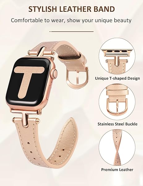 - Wearlizer Leather Band Compatible with Apple Watch Band Women 38/40/41/42/44/45/49mm Dressy Fashion Fancy Strap with T-shape Metal Buckle for iWatch Bands Series 11 10 9 8 7 6 5 4 3 SE/Ultra 3 2 1 with reliable performance and quality- Unique StyleCompatible with apple watch band leather women features a unique and elegant T-shaped metal buckle design that gives your watch a sophisticated, professional look and makes it stand out from traditional leather iwatch bands. You will rec