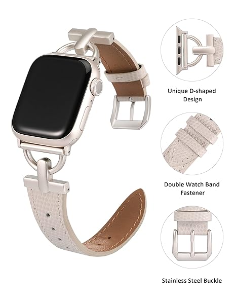 - Wearlizer Leather Band Compatible with Apple Watch Bands Women 41mm 40mm 38mm 49mm 46mm 45 44 42mm, Fancy Dressy Strap for iWatch Series 11 10 9 8 7 6 5 4 3 SE/Ultra 3 2 1,Lizard Starlight/Starlight with reliable performance and quality- Unique DesignWearlizer compatible with apple watch leather band features a unique and elegant D-shaped metal buckle design that makes it stand out from traditional leather bands. The elegant, generous and classic shape is perfect for those who are
