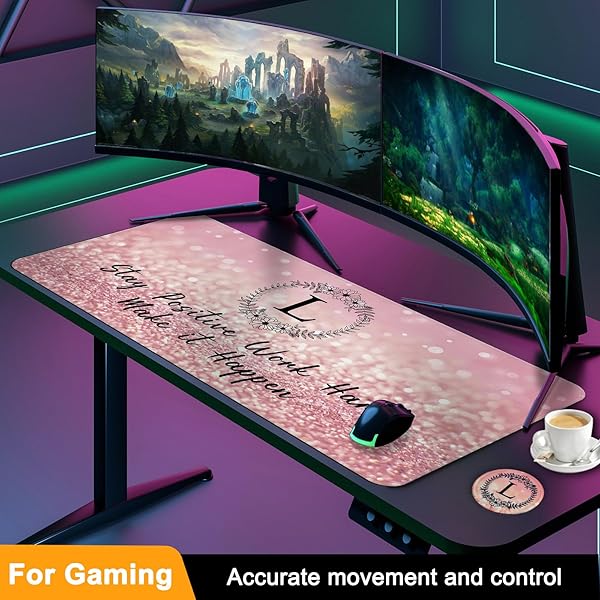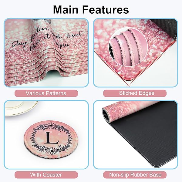 - Pink Large Gaming Mouse Pad with Coaster, Desk Mat, Mouse Pad for Computer Keyboard Laptop Office Decor, Stitched Edges Extended Mousepad, 31.5'' x15.6''-Letter L with reliable performance and quality- Elegant looking: Designed with pretty and delicate patterns, applied excellent printing technology to ensure color vibrant. It can be decoration on your desk, also a good gift for you or your Friends, Family and Colleagues.- Opitimal Size: The extended desk pad measures 31.5"