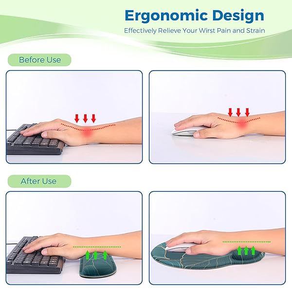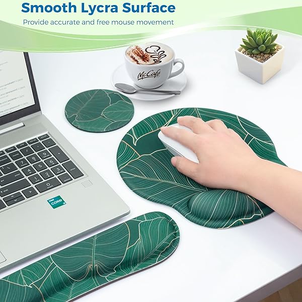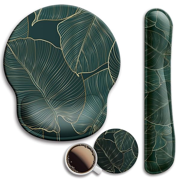 - Mouse Pad and Keyboard Wrist Rest Support, with Non-Slip PU Base,Gel Mouse Pad with Coaster,Pain Relief for Gaming, Computer,Office -Green Leaves with reliable performance and quality- Aesthetic:We select this pretty and delicate pattern for you, applied excellent priting to ensure color vibrant. It is perfect to add some personality to your desk.- Larger:Wrist mouse pad (9 x 9.9 inch) 20% larger than usual to ensure slide more conveniently , keyboard wrist rest ( 17.7 x3.5