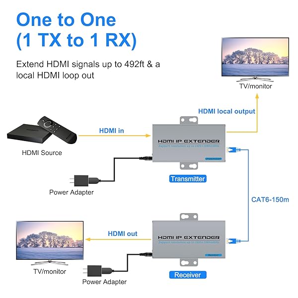 - Wiistar HDMI Extender Over IP Over Single Cat5e/6 492ft One to Many Full HD 1080P@60Hz HDMI Ethernet RJ45 Extender with HD Loop Out with reliable performance and quality- HDMI Extender 150mThis HDMI extender sends HDMI audio and video signals up to 150 meters through network cable. Using Cat5 cable up to 100m; Cat5e up to 120m; Cat6 up to 150m. Instead of extra-long HDMI cables, reduce costs.- HD 1080P@60HzHDMI input and output resolution up to 1920X1080P@60Hz, backward com