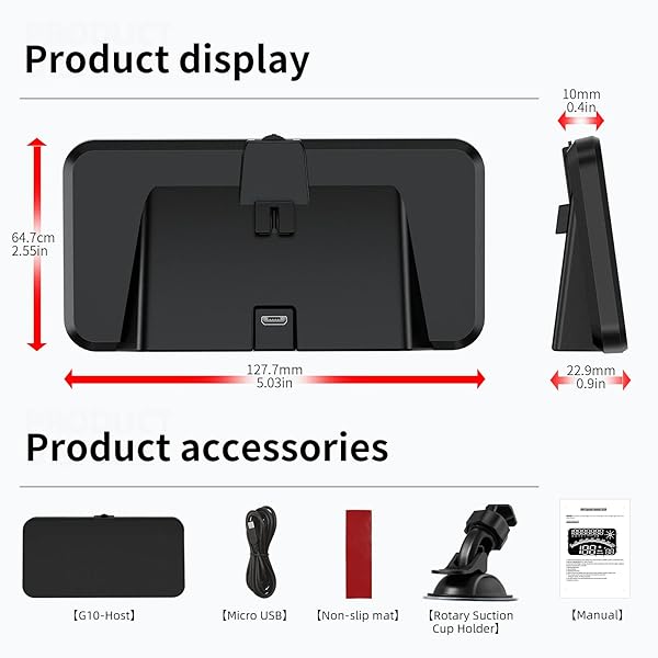 - wiiyii Digital GPS Speedometer, HUD Head Up Display for Car, Upgraded 5.5" large-screen, Suitable for All Vehicles: reliable performance and quality- HUDThe G10 can automatically adjust the brightness according to the- GPS functionsAltitude, Driving Time, Clock, Acceleration Time,- Two alarm functions Three-stage overspeed alarm and eight-hour- USB portPlease use it within 5V, connect the USB cable to the USB