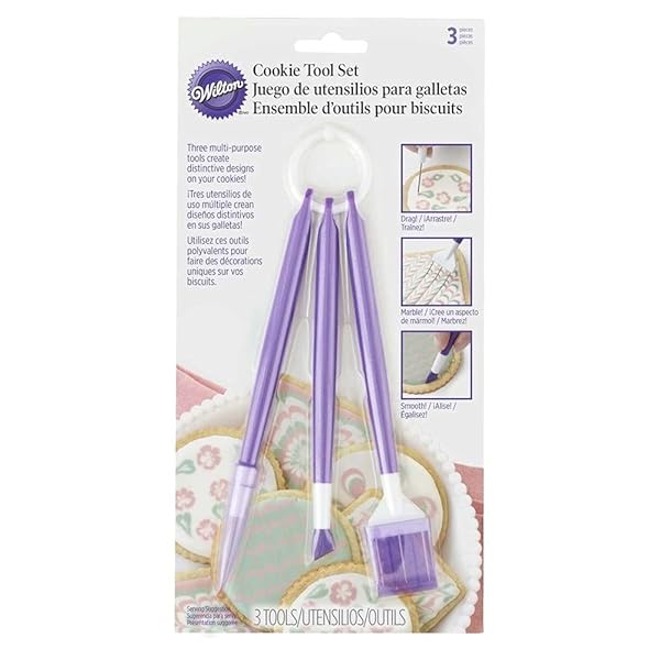- Wilton Cookie Decorating Supplies Tool Set, 3-Piece offers reliable performance and quality- Includes etching tool, 3-prong comb and silicone scraper; drag, marble, and smooth your cookie icing- 3 multi-purpose cookie decorating tools create distinctive designs on your cookies and baked goods- Pairs perfectly with edible markers, cookie cutters, and icing bags to complete your baking supplies