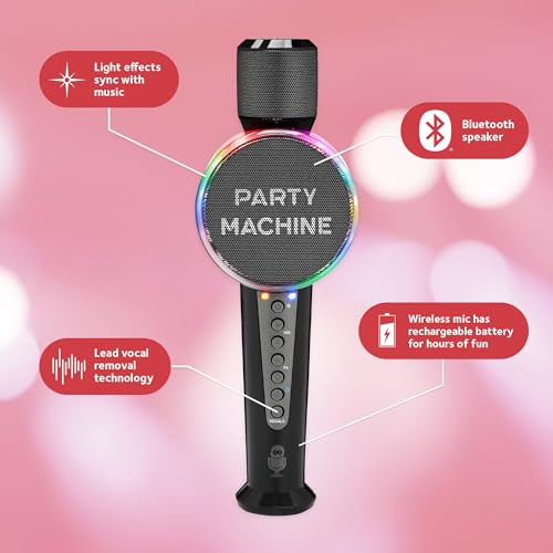 * Singing Machine Wireless Karaoke Microphone for Kids & Adults, Party Machine Mic (Black) - Portable Handheld Bluetooth Microphone with Speaker & Voice Changer Effect - Karaoke Mic for Singing: this rockin mic is built for fun and good times anywhere! it features big time * Blasting Audio And Dazzling Music-Syncing Lights * Just Pair Your Bluetooth Device To Get The Party Started * The 6 Built-In Voice Changers Will Take Your Performances To The Next Level * If YouRe Feeling Brave