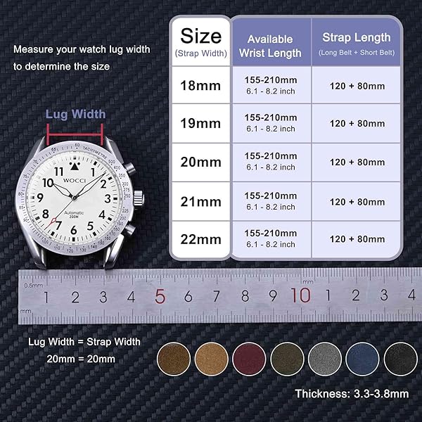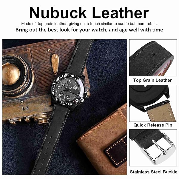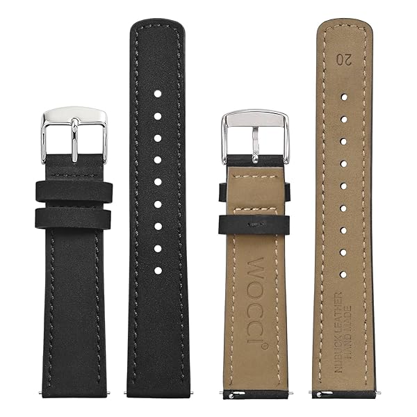 - WOCCI 19mm Retro Leather Watch Band for Men and Women, Quick Release Replacement Strap with Silver Buckle (Black) with reliable performance and quality- Watch Band Material: Made of Nubuck leather with stainless steel buckle. This Nubuck leather is made from top grain leather without being waxed. Rubbing the surface of the leather can make the color change as the direction of the short fibers changes.- Retro Look: To enhance its quality and appearance, this leather undergoe