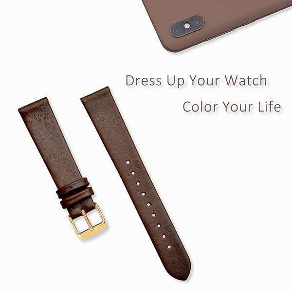 - WOCCI 10mm Lug Width, Elegant Watch Band, Genuine Leather Replacement Strap with Gold Buckle (Caramel Brown) provides reliable performance and quality- Watch Strap Material: Soft genuine leather.- Buckle: Gilded polished stainless steel buckle.- Band Width (Size): 10 mm. In order to get a suitable strap, please measure inner distance in millimeter between two horns on your watch.
