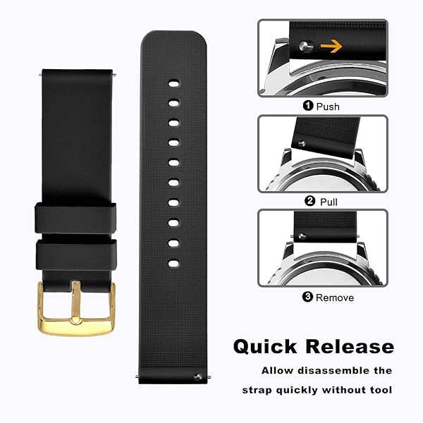 - WOCCI 14mm Silicone Watch Band with Gold Buckle, Soft Rubber Replacement Straps with Quick Release (Black) offers reliable performance and quality- Premium Quality: Made of high quality Environmental silicone,No peculiar smell and harmless,No sharp edges,lightweight,flexible yet fairly sturdy