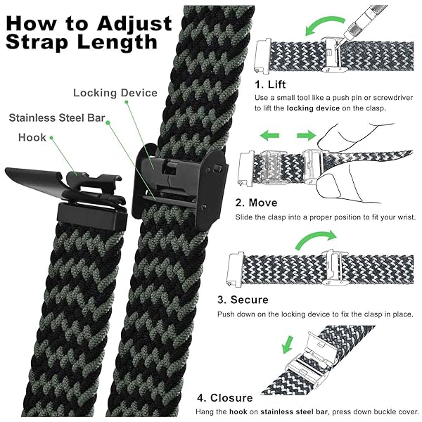 - WOCCI 19mm Braided Nylon Watch Band for Men and Women, Quick Release, Black Stainless Steel Buckle (Green Black) with reliable performance and quality- Braided Watch Band: This watch strap is made of quality stretchable yarn interwoven with silicone threads with adjustable buckle, soft, lightweight, breathable, washable, durable and comfortable to wear. Perfect for sports and everyday use.- Upgraded Adjustment Buckle: This bracelet features an adjustable stainless steel met