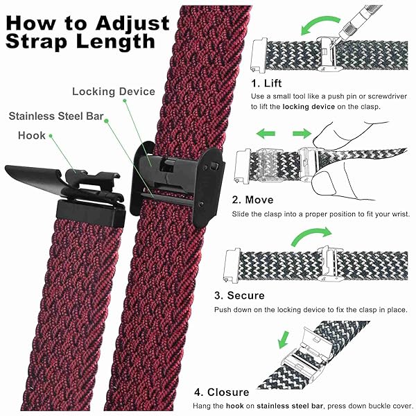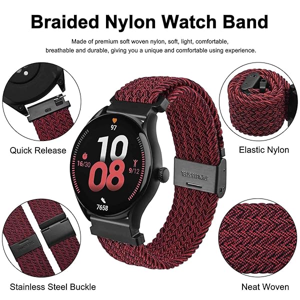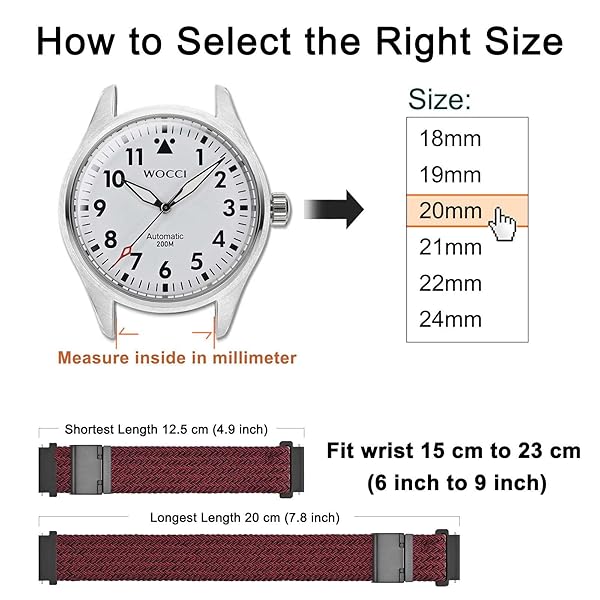 - WOCCI 19mm Braided Nylon Watch Band for Men and Women, Quick Release, Black Stainless Steel Buckle (Red Black) with reliable performance and quality- Braided Watch Band: This watch strap is made of quality stretchable yarn interwoven with silicone threads with adjustable buckle, soft, lightweight, breathable, washable, durable and comfortable to wear. Perfect for sports and everyday use.- Upgraded Adjustment Buckle: This bracelet features an adjustable stainless steel metal