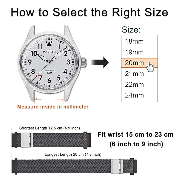 - WOCCI 20mm Braided Nylon Watch Band for Men and Women, Quick Release, Silver Stainless Steel Buckle (Grey) with reliable performance and quality- Braided Watch Band: This watch strap is made of quality stretchable yarn interwoven with silicone threads with adjustable buckle, soft, lightweight, breathable, washable, durable and comfortable to wear. Perfect for sports and everyday use.- Upgraded Adjustment Buckle: This bracelet features an adjustable stainless steel metal buc