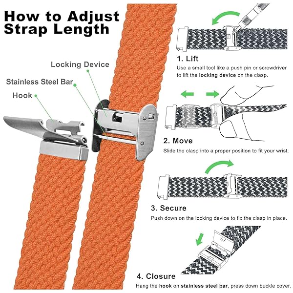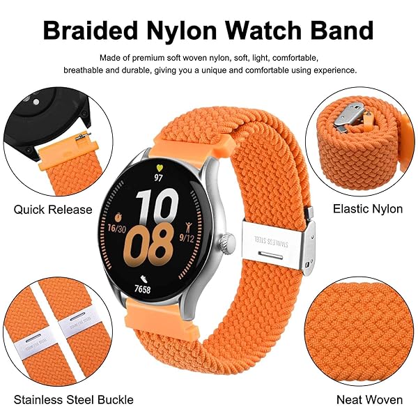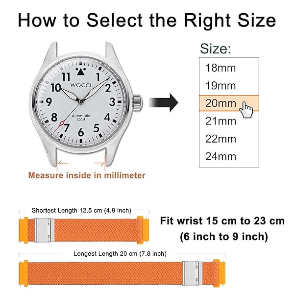 - WOCCI 20mm Braided Nylon Watch Band for Men and Women, Quick Release, Silver Stainless Steel Buckle (Orange) with reliable performance and quality- Braided Watch Band: This watch strap is made of quality stretchable yarn interwoven with silicone threads with adjustable buckle, soft, lightweight, breathable, washable, durable and comfortable to wear. Perfect for sports and everyday use.- Upgraded Adjustment Buckle: This bracelet features an adjustable stainless steel metal b