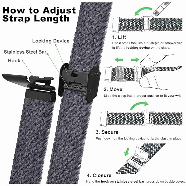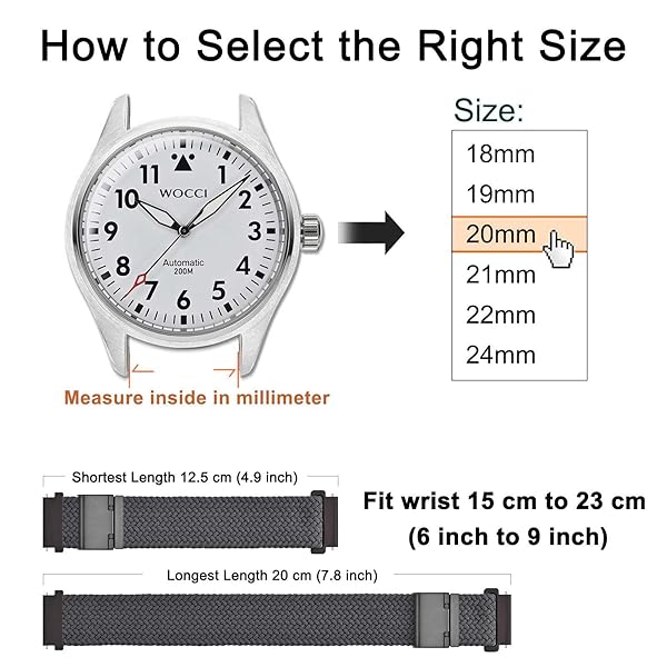 - WOCCI 21mm Braided Nylon Watch Band for Men and Women, Quick Release, Black Stainless Steel Buckle (Grey) with reliable performance and quality- Braided Watch Band: This watch strap is made of quality stretchable yarn interwoven with silicone threads with adjustable buckle, soft, lightweight, breathable, washable, durable and comfortable to wear. Perfect for sports and everyday use.- Upgraded Adjustment Buckle: This bracelet features an adjustable stainless steel metal buck