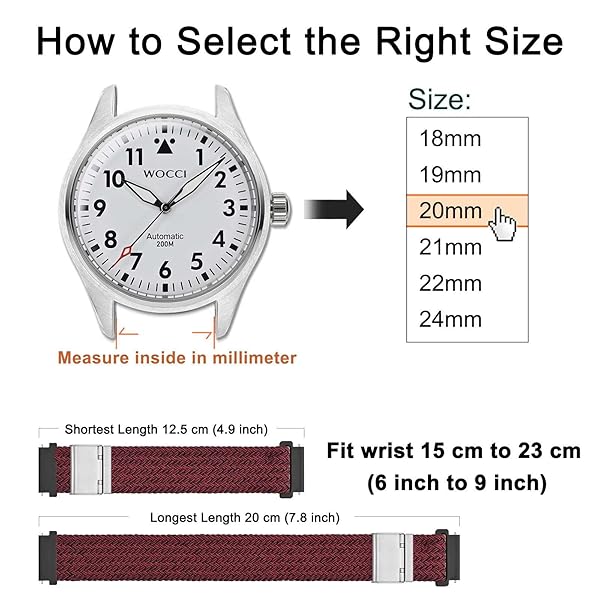 - WOCCI 21mm Braided Nylon Watch Band for Men and Women, Quick Release, Silver Stainless Steel Buckle (Red Black) with reliable performance and quality- Braided Watch Band: This watch strap is made of quality stretchable yarn interwoven with silicone threads with adjustable buckle, soft, lightweight, breathable, washable, durable and comfortable to wear. Perfect for sports and everyday use.- Upgraded Adjustment Buckle: This bracelet features an adjustable stainless steel meta