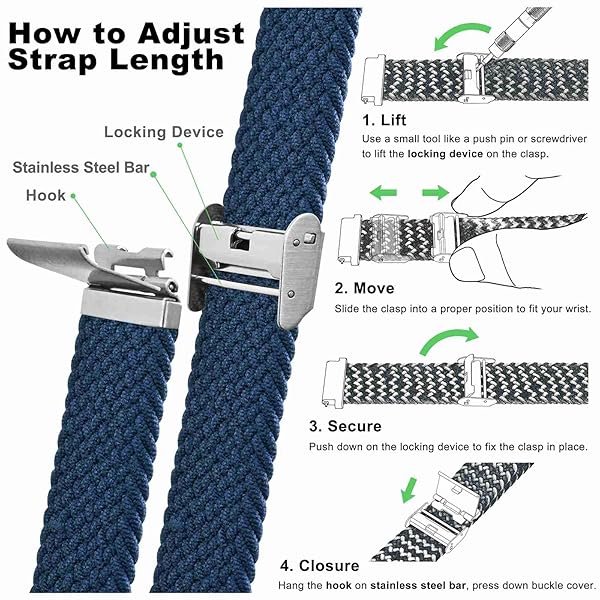 - WOCCI 22mm Braided Nylon Watch Band for Men and Women, Quick Release, Silver Stainless Steel Buckle (Blue) with reliable performance and quality- Braided Watch Band: This watch strap is made of quality stretchable yarn interwoven with silicone threads with adjustable buckle, soft, lightweight, breathable, washable, durable and comfortable to wear. Perfect for sports and everyday use.- Upgraded Adjustment Buckle: This bracelet features an adjustable stainless steel metal buc