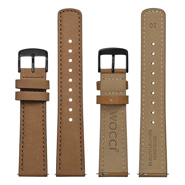 - WOCCI 22mm Retro Leather Watch Band for Men and Women, Quick Release Replacement Strap with Black Buckle (Light Brown) with reliable performance and quality- Watch Band Material: Made of Nubuck leather with stainless steel buckle. This Nubuck leather is made from top grain leather without being waxed. Rubbing the surface of the leather can make the color change as the direction of the short fibers changes.- Retro Look: To enhance its quality and appearance, this leather und