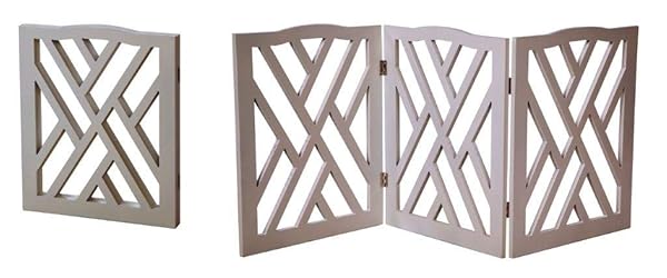 - Indoor/Outdoor Solid Wood Crisscross Freestanding Foldable Adjustable 3-Section Pet Gate: reliable performance and quality- 19"H - 3 panel pet gate adjusts to fit doorways almost 4 feet wide- Wood crisscross design 3 panel system and made of solid wood- Perfect indoors and outdoors- Compliments any decor