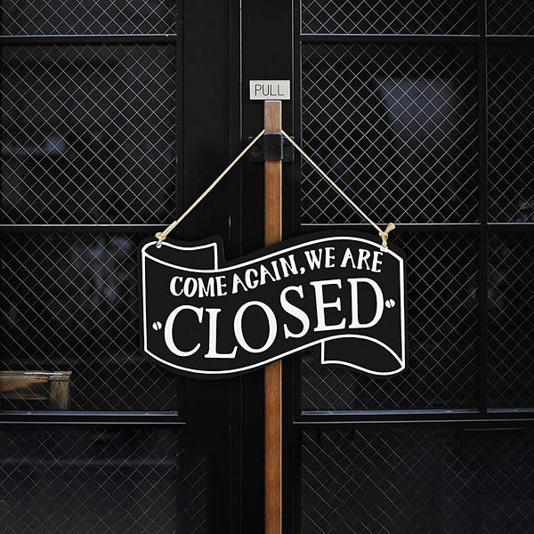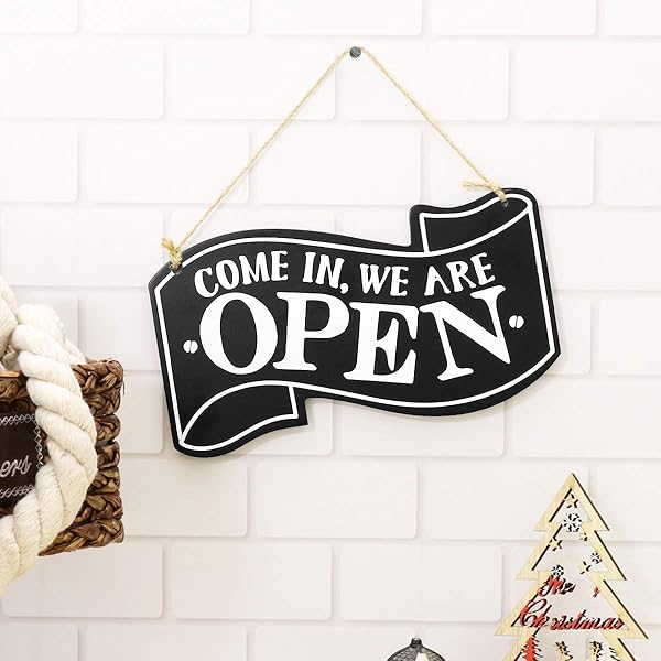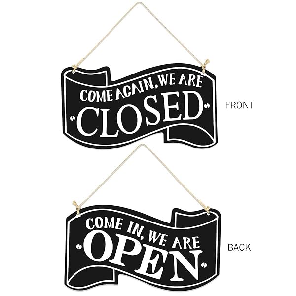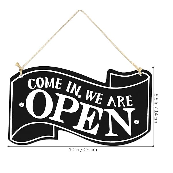- Wooden Double Sided Store Open and Closed Signs for Store Business or Home (Black) offers reliable performance and quality- Hanging decoration for wedding, bar, club, cafe shop, clothes store door and window. Make your shop more unique and attractive- Clean, bold, modern design and features a braided rope for hanging. Front side reads, Come in We're Open. Rear side reads, Sorry, We're Closed