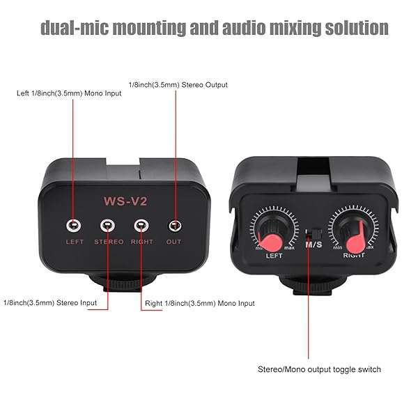 - Camera Mic Audio Mixer,WS-V2 2 Channel Universal Microphone Audio Adapter Mixer with 3.5mm Inputs for DSLR Cameras provides reliable performance and quality- High Quality MaterialsThis items is made of premium plastic material and electron,it is lightweight and portable to carry and durable for long time use.