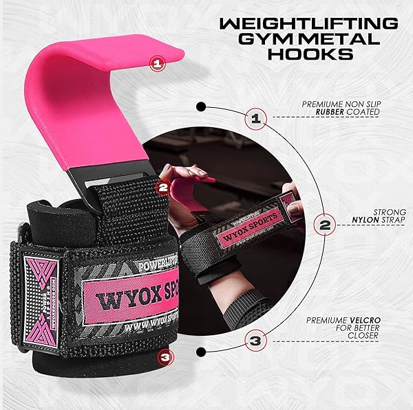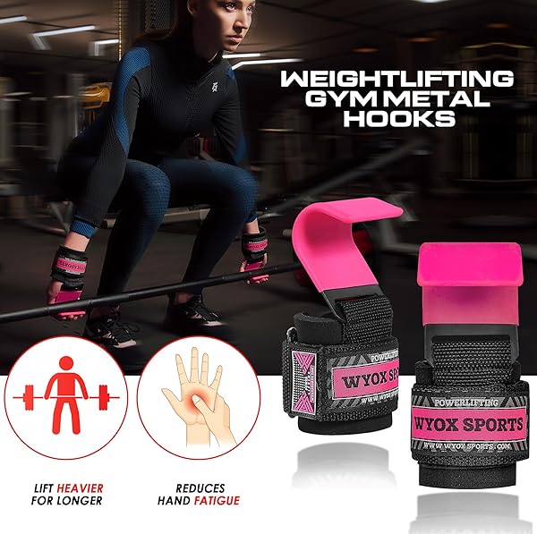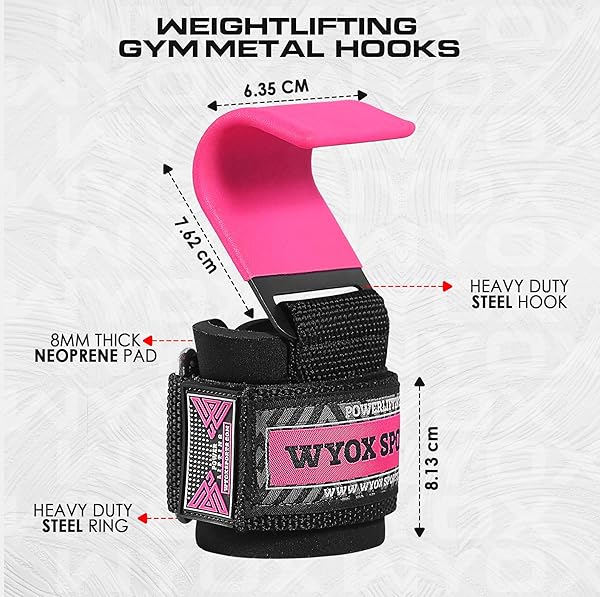 WYOX Weight Lifting Hooks for Men & Women - 7mm Wrist Padding for Powerlifting, Deadlifts & More - Durable Gym Lifting Straps