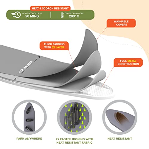 "Xabitat Wall Mounted Ironing Board: Compact 36.2" Fold Down Design for Small Spaces - Space-Saving with Cotton Cover in White & Grey"
