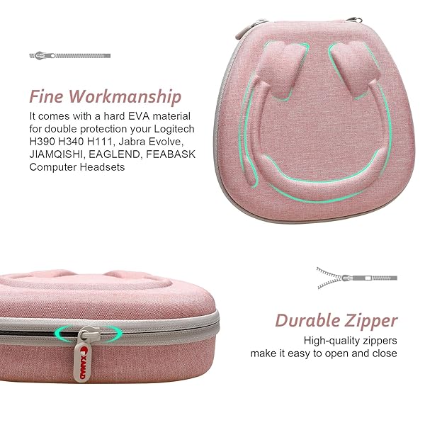 - XANAD Hard Case for Logitech H390, H430, H570e, Zone 300, Zone 301 or JLab Go Work, JIAMQISHI, EAGLEND, FEABASK Wired Headset Stereo Headphones with Noise Cancelling Mic Headphones - Pink+Grey with reliable performance and quality- Compatibility: Perfectly fits Logitech H390,H340,H750e / Logitech Zone 300,301 / JLab Go Work / Jabra / awatrue / JIAMQISHI / EAGLEND / FEABASK Headset ect.- Hard Protective Case: Comes with EVA material, sturdy and durable, emi-waterproof, shock