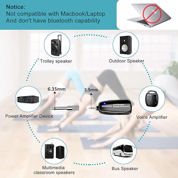 - Wireless Microphone Headset, 2.4GHz Cordless Head Mic, USB-C Charging Microphones, 165ft Range, for Voice Amplifier Speaker Pa System Teaching Tour Guides Conference Yoga Dance Fitness Instructor offers reliable performance and quality- Wireless Microphone: Do not support mobile phone/ Macbook/computer,Not support Aux or digital audio system.Only suitable for PA equipment with MIC input jack.With 165ft range transmission distance