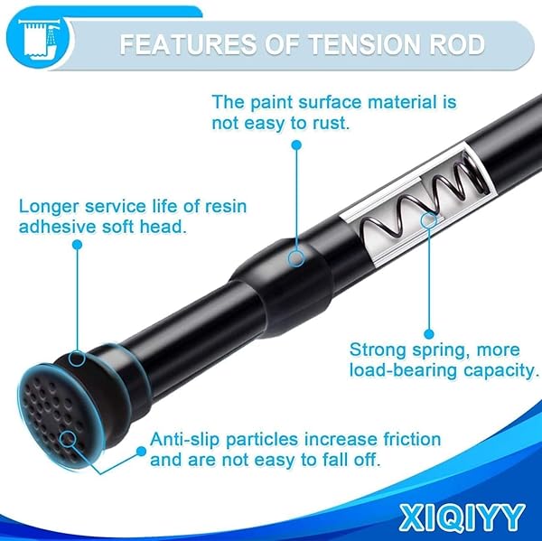XIQIYY Heavy-Duty Adjustable Tension Rod 16-28 Inch - Anti-Slip Shower Curtain Rod in Black