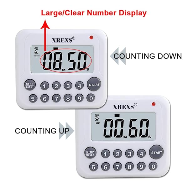 - XREXS Digital Kitchen Timer Magnetic Countdown Up Cooking Timer Clock with Magnet Back and Clip, Loud Alarm, Large Display Minutes and Seconds Directly Input-White (2 Pcs, Battery Included) PS-367 offers reliable performance and quality