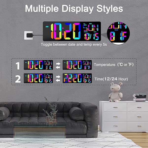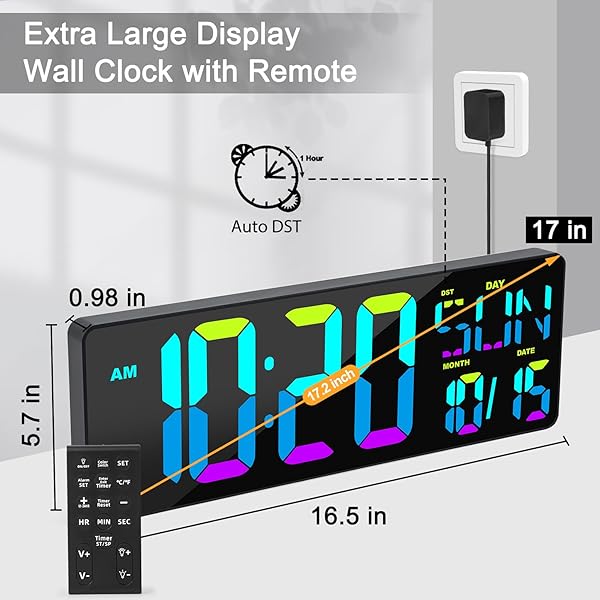 - XREXS Large Digital Wall Clock with Remote Control, 17 Inch LED Large Display Count Up & Down Timer, Adjustable Brightness RGB Color Changing Clock Alarm Clock for Home, Gym, Office and Classroom with reliable performance and quality- Dynamic RGB Clock ChangingThe Led digits and letters have 6 different single segment color patterns plus 4 different multi-color patterns. A handy remote allows you to change the colors so that you can either have one color or custom colors that alte