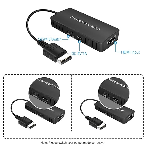 * Y.D.F Dreamcast to HDMI Converter Supports 16:9/4:3 Switching, HD Link Cable for Sega Dreamcast, HDMI Cable for Sega Dreamcast (Sega DC): dreamcast to hdmi converter * Sega Dreamcast to HDMI converter is a must if you want to keep using your older devices with your new smart modern HD TV/ HDMI monitor * It can Provide You a Fantastic Home Theater Experience * Support HDMI 480i/576i/480p output * No need to install drivers