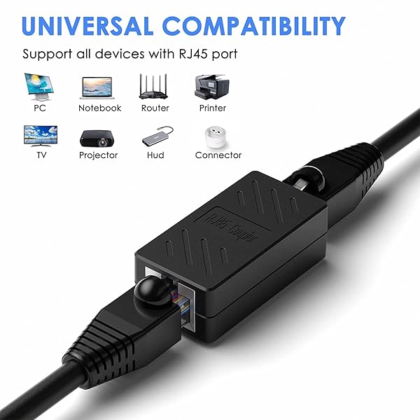 - Y.D.F Ethernet Cable Extender, RJ45 Coupler, Extender Connector - Ethernet Coupler for Cat8/ Cat7/ Cat6/ Cat5 Ethernet Cables (Female Black 10 Pack) offers reliable performance and quality- Usage: It is used for extending ethernet connection by connecting 2 short network cables together- RJ45 Coupler With nickel plated contacts and easy snap-in retaining clip, the coupler ensure a secure and corrosion free connection