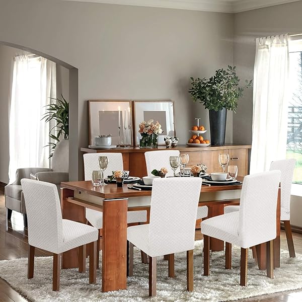 - YEMYHOM 2 Packs Latest Checkered Dining Chair Slipcover Parsons Chair Furniture Protector Stretch Chair Covers for Dining Room, Restaurant, Kitchen, Party (White) offers reliable performance and quality