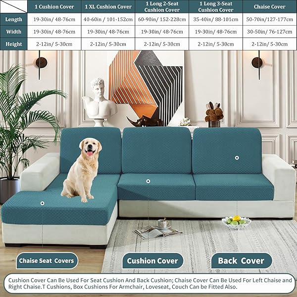 - YEMYHOM Stretch Individual Cushion Covers Sofa Chair Seat Cushion Slipcovers Soft Couch Cover Replacement Large Checkered Furniture Protector with Elastic Bottom (1 Pc Cushion Cover, Peacock Blue) with reliable performance and quality- Versatile Design1 PC included. Fit a cushion with 19-30" in length, 19-30"in width, 2-12" in height. This Universal cushion cover is not limited to just chair seat, sofa seat; it can also be used on sofa back cushion, box cushion, T cushion, long cu