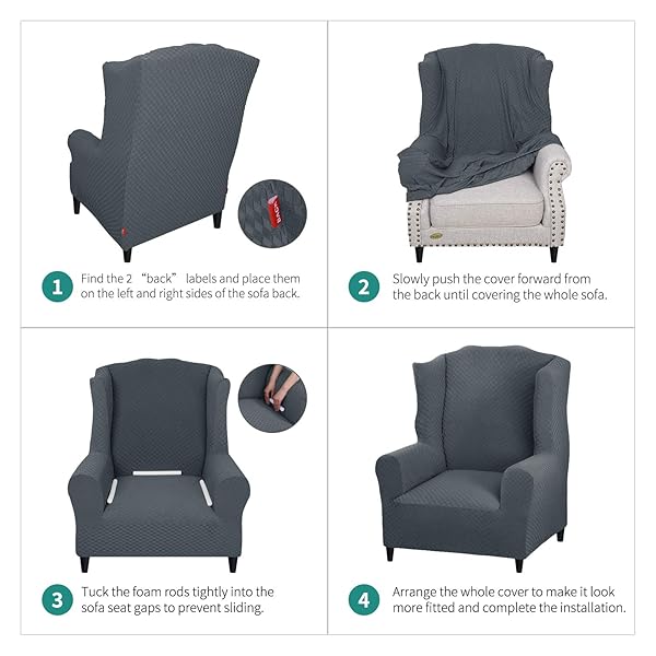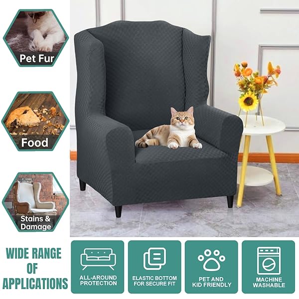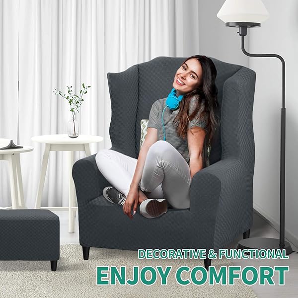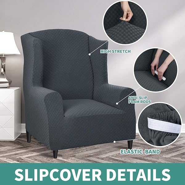 - YEMYHOM 1 Piece Stretch Wingback Chair Slipcover Latest Jacquard Design Wing Chair Cover Non Slip Furniture Protector with Foam Rods for Living Room (Wing Chair, Dark Gray) offers reliable performance and quality