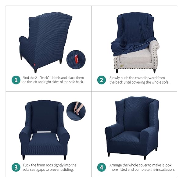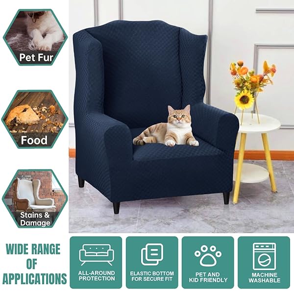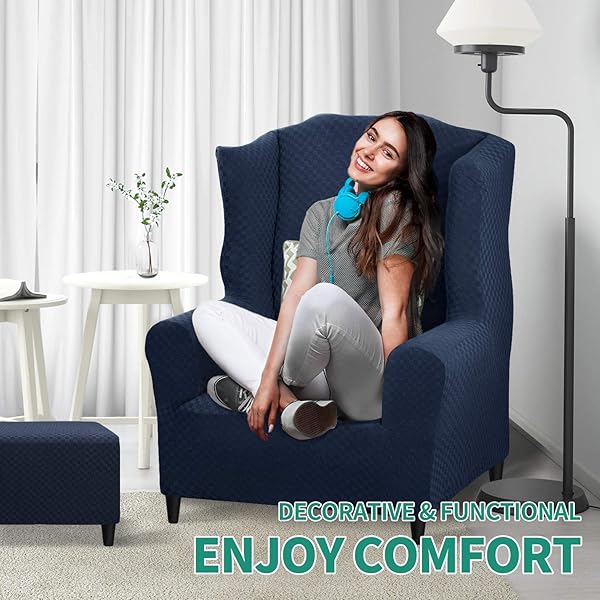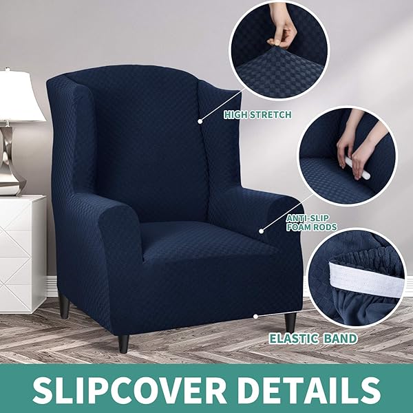 - YEMYHOM 1 Piece Stretch Wingback Chair Slipcover Latest Jacquard Design Wing Chair Cover Non Slip Furniture Protector with Foam Rods for Living Room (Wing Chair, Navy) offers reliable performance and quality