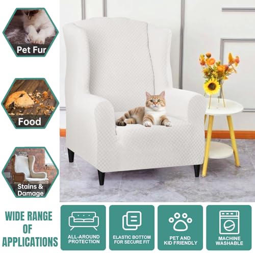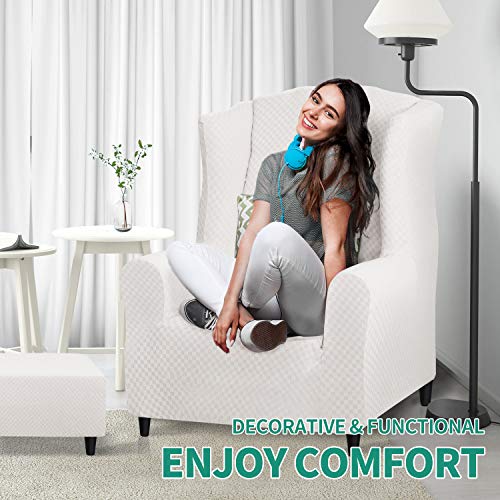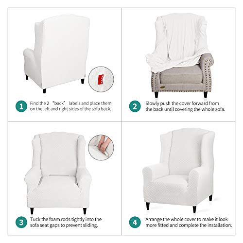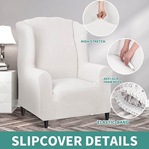 - YEMYHOM 1 Piece Stretch Wingback Chair Slipcover Latest Jacquard Design Wing Chair Cover Non Slip Furniture Protector with Foam Rods for Living Room (Wing Chair, White) offers reliable performance and quality