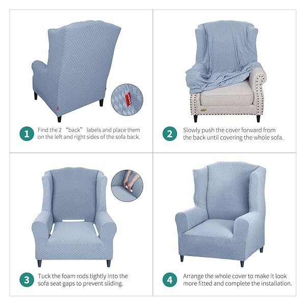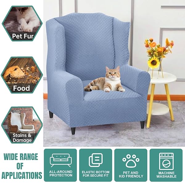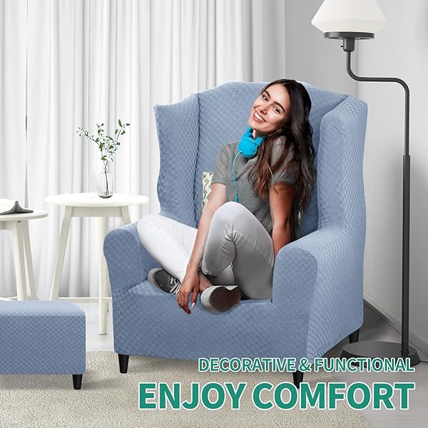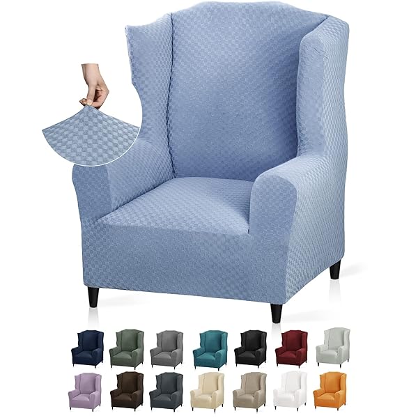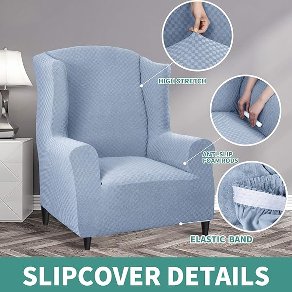 - YEMYHOM 1 Piece Stretch Wingback Chair Slipcover Latest Jacquard Design Wing Chair Cover Non Slip Furniture Protector with Foam Rods for Living Room (Wing Chair, Light Blue) offers reliable performance and quality