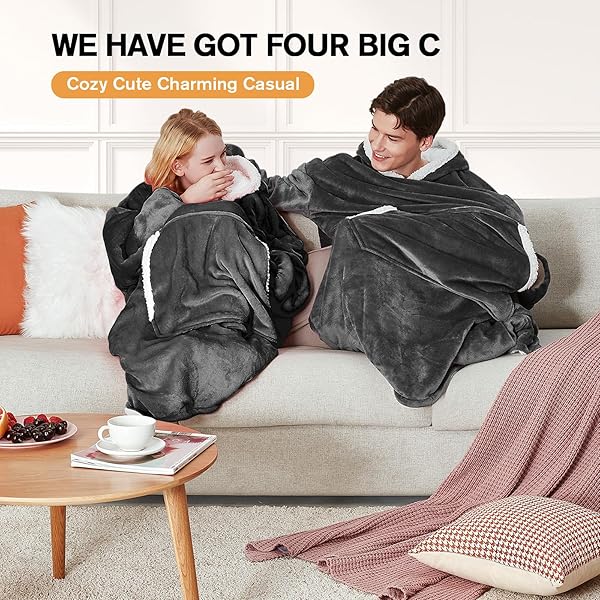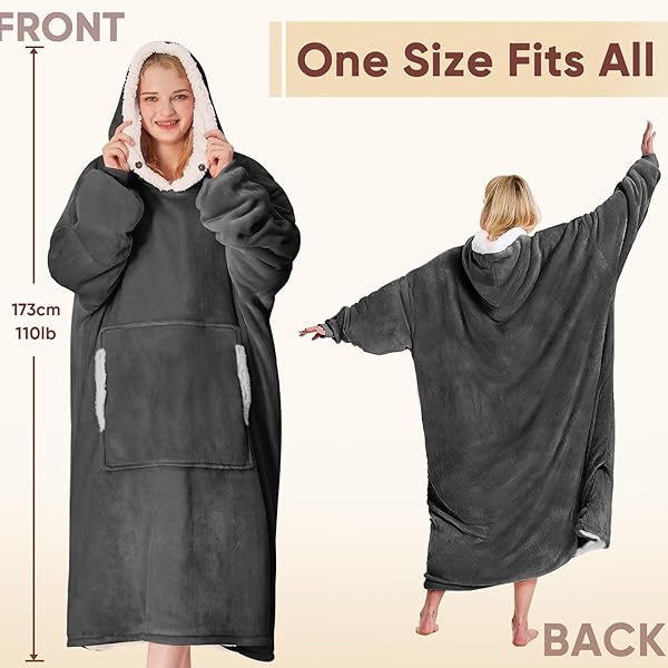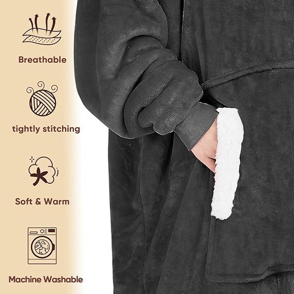 * yescool Wearable Blanket Hoodie - Birthday Christmas Gifts for Women Mom Girlfriend, Oversized Flannel Sherpa Cozy Hooded Blanket Sweatshirt Adult With Hood Pocket & Sleeves, One Size Fits All (Grey): decent christmas gift ideas receiving christmas or birthday gifts is fun * While finding gift ideas for mom * Women * Wife * Girlfriends