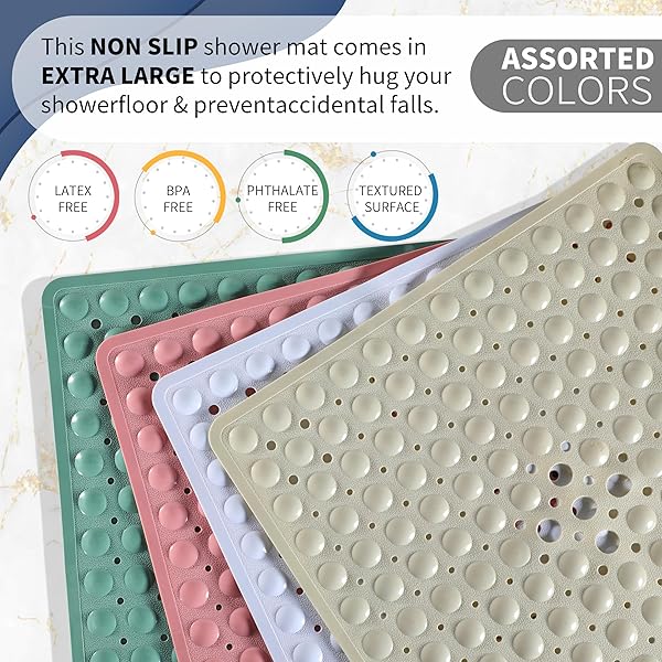 - Yimobra Shower Stall Mat Non Slip, 21x21 Inch, Soft Square Bath Mat for Shower with Suction Cups and Drain Holes, Stall Floor Mats for Bathroom, Machine Washable, Bathroom Accessories, Clear Green offers reliable performance and quality