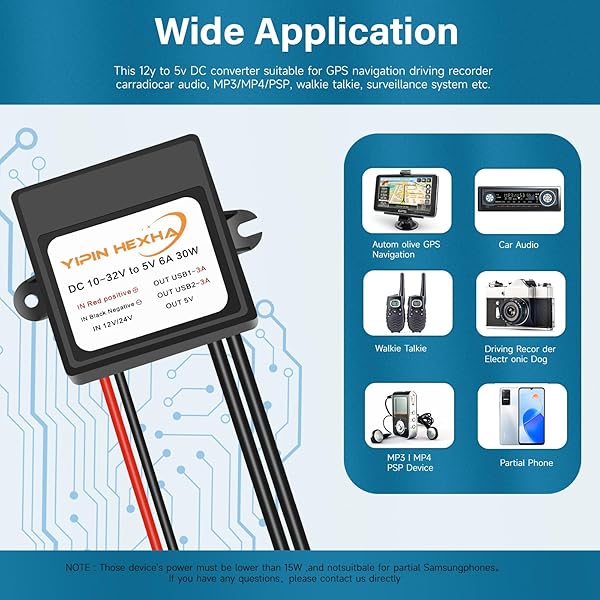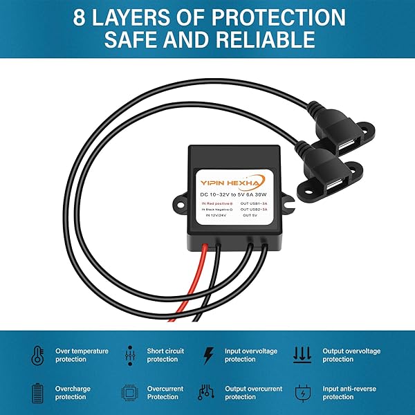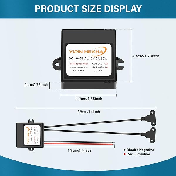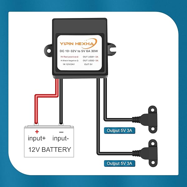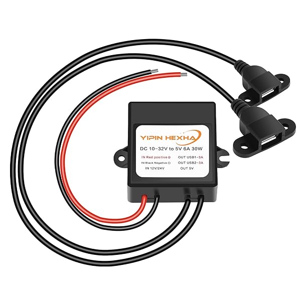 - DC 12V 24V to 5V 6A 30W Dual USB Female DC Buck Converter Adapter Step Down Charging ModuleUSB Female Head with Screw Hole can be Used for Panel Installation with reliable performance and quality- Input voltage: DC 12V/24V Output voltageDC 5V; Output current: 3A max; Output power 15W max- Multi-function: Output USB female cable with screw holes for panel mounting, for charging- Our 12V/24V to 5V step-down converters with screw holes are designed for easy mounting on
