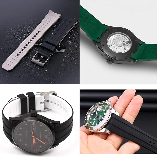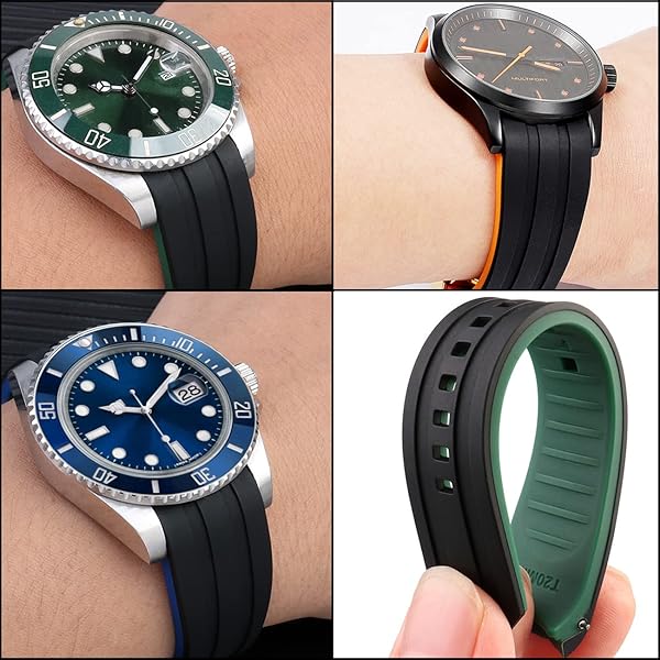 - YISIWERA Stylish 22mm Two Tone Black Top-Green Bottom Rubber Silicone Watch Band Universal Curved Ends Watch Strap Solid Stainless Steel Buckle for Men Women with reliable performance and quality- Seamless Assembly Design: One of the biggest advantages of our silicone watch bands is their ability to seamlessly fit onto a watch with curved lugs. The rubber watch straps will sit snugly against the watch case, creating a more cohesive and streamlined look.An excellent choice for anyo