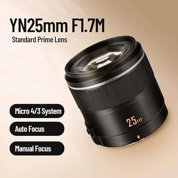 - Yongnuo YN25mm F1.7M Auto Focus Standard Prime Lens, Mirrorless Micro Four Thirds, Compatible with Olympus and Panasonic Cameras Black provides reliable performance and quality- FeaturesYONGNUO YN25MM F1.7M lens for M4/3 mount. Focal Length 25mm, F1.7 large aperture, 7 blades in 6 groups, 7pcs Aperture blades, Auto Focus and Manual Focus