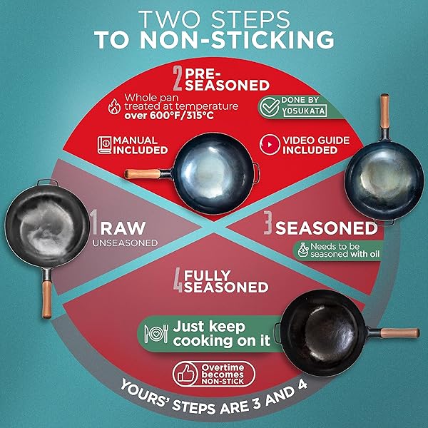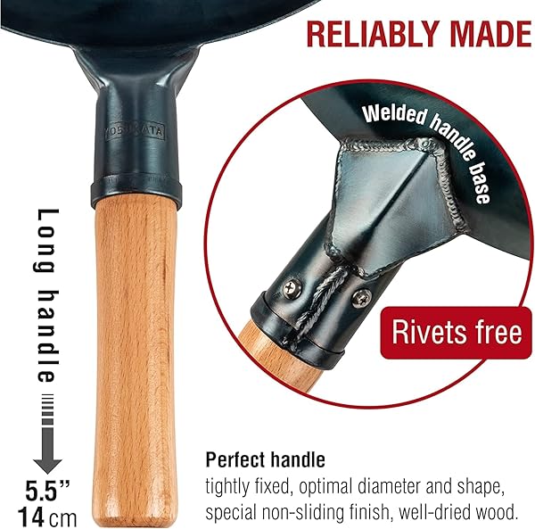 * YOSUKATA 14 Round Bottom Carbon Steel Wok Pan Blue Pre-Seasoned Pow Wok for Stir Fry, BBQ & Camping Traditional Japanese & Chinese Cookware Compatible with Gas Stoves & Open Fire Only: true flavor & versatility: discover the rich * True flavours of Chinese and Asian cuisine at home or outdoors * The YOSUKATA 14 carbon steel wok with round bottom is specially designed to retain juices and enhance taste * Whether you're looking for a BBQ wok * Extra large wok
